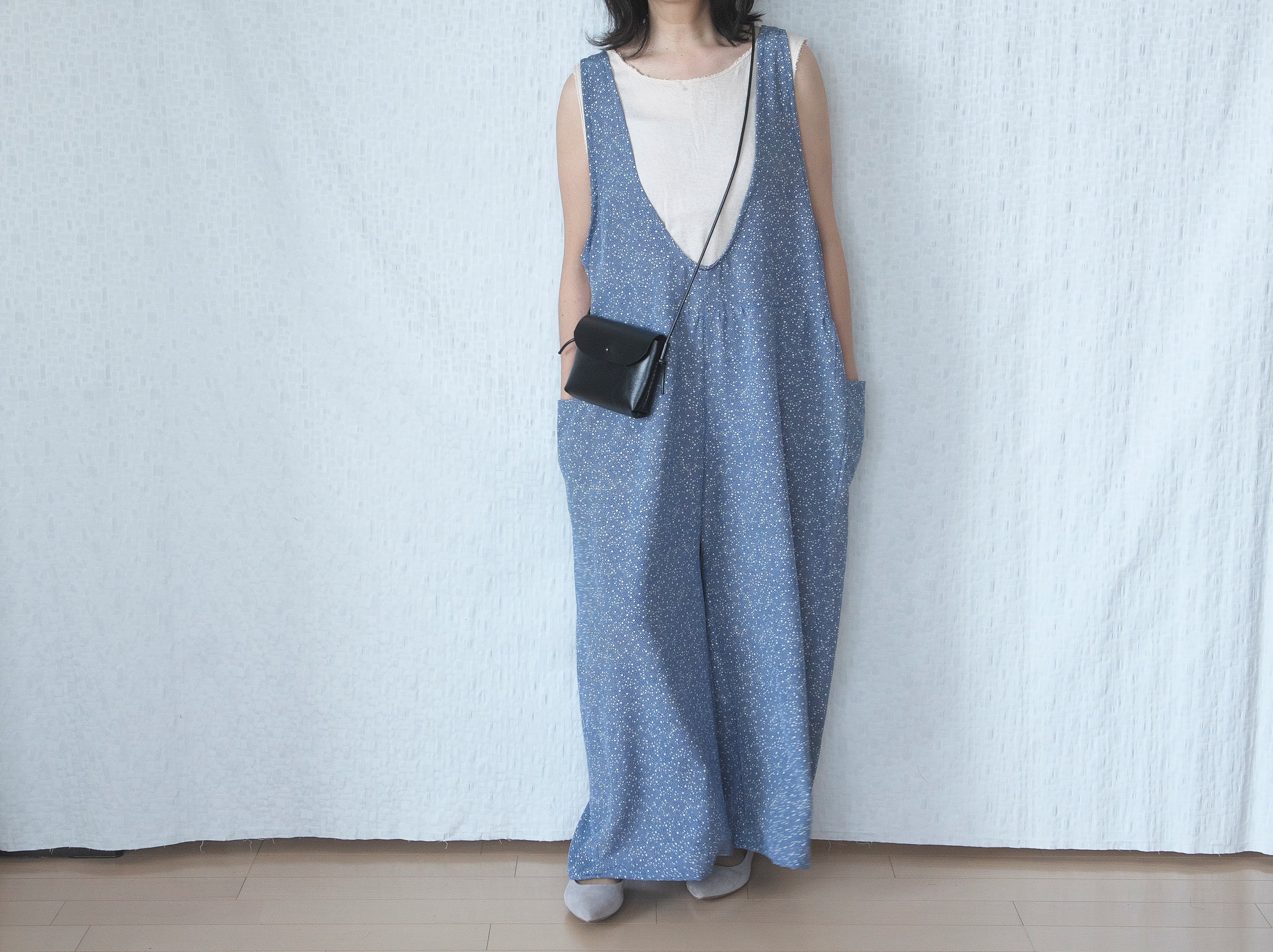 これから夏に向けて、涼しげにお召しいただけるサロペットができました。