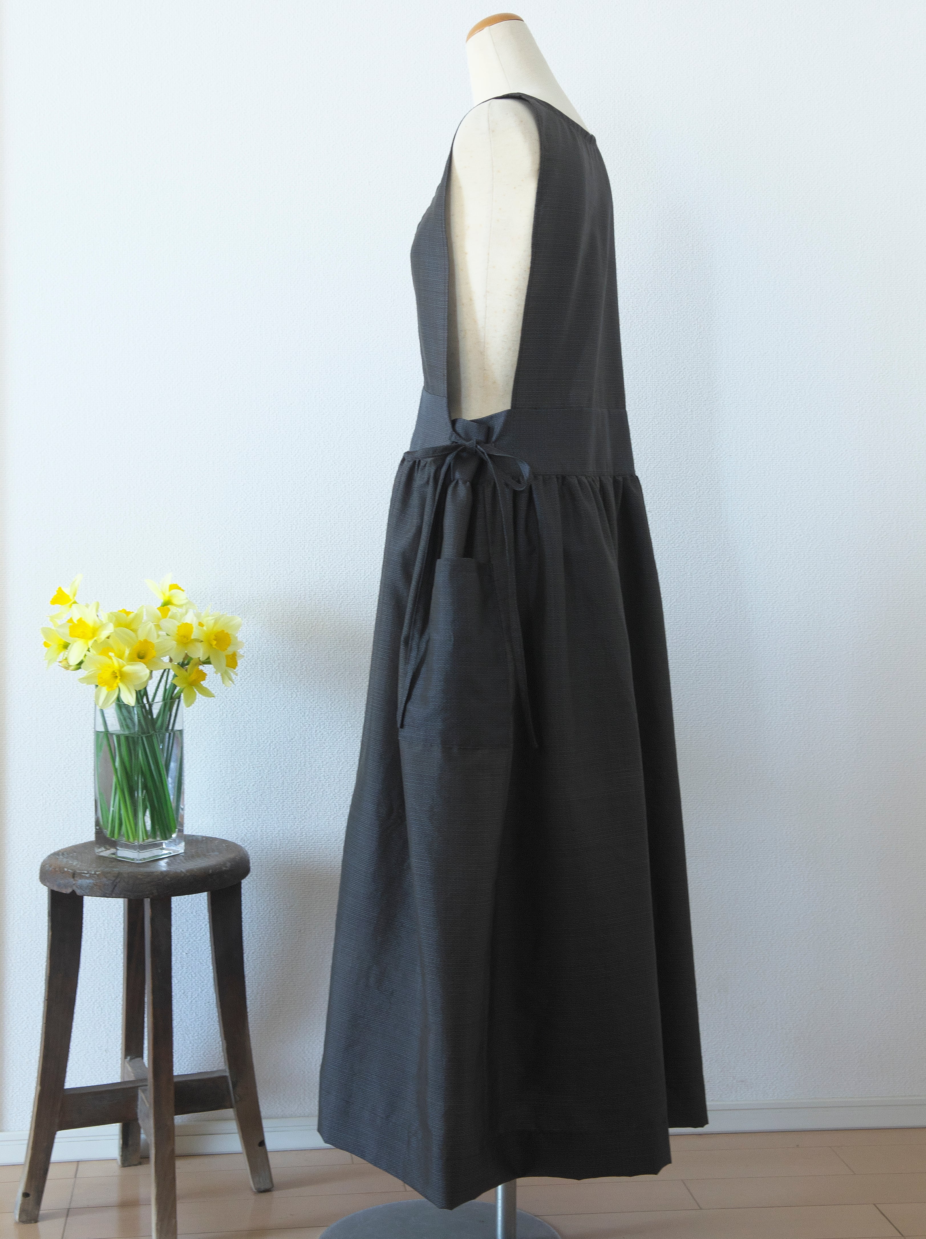 一度水洗いしていますので、ご家庭でお洗濯が可能ですが、色落ちしますので他のものと一緒にせずに、中性洗剤でやさしく素早く手洗いしてください。脱水は1分以内、しわをのばして陰干ししてください。