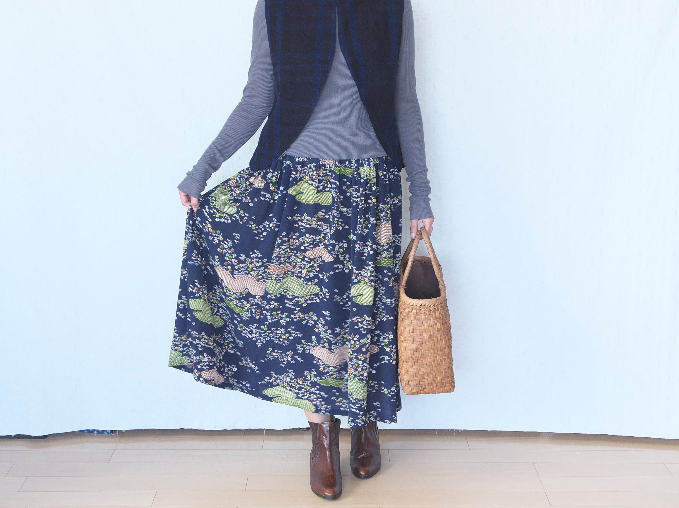 とろっと薄手の錦紗の質感も相まって、着物リメイクらしい繊細で華やかなスカートができました。