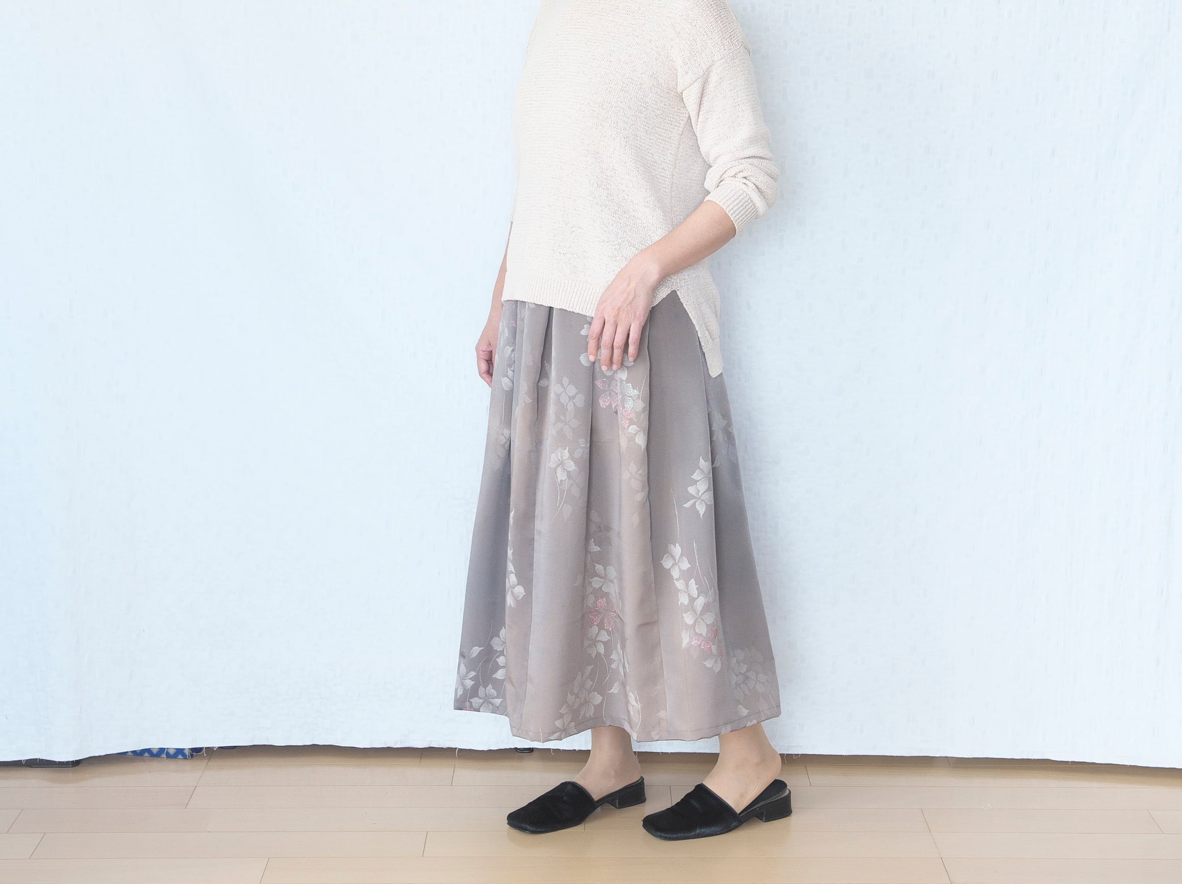 お着物を解いて作ったスカートです。