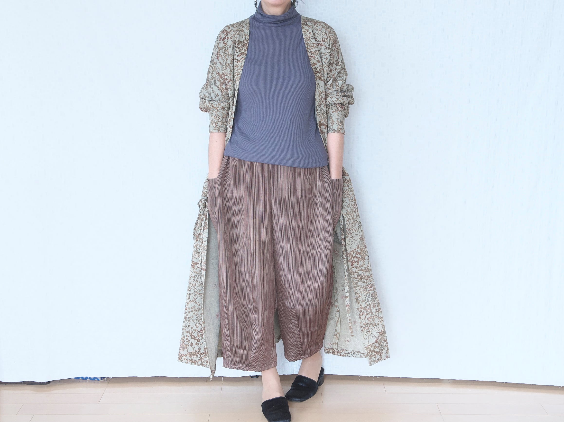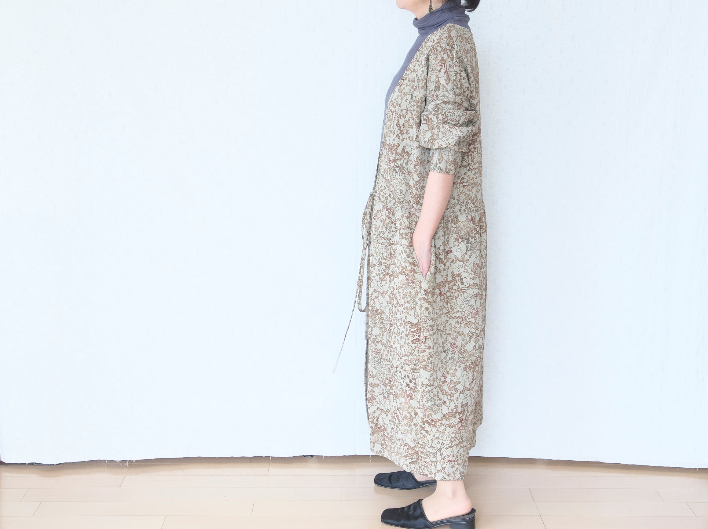 交差させず前で結べばゆったりラインのオーバーワンピ。
