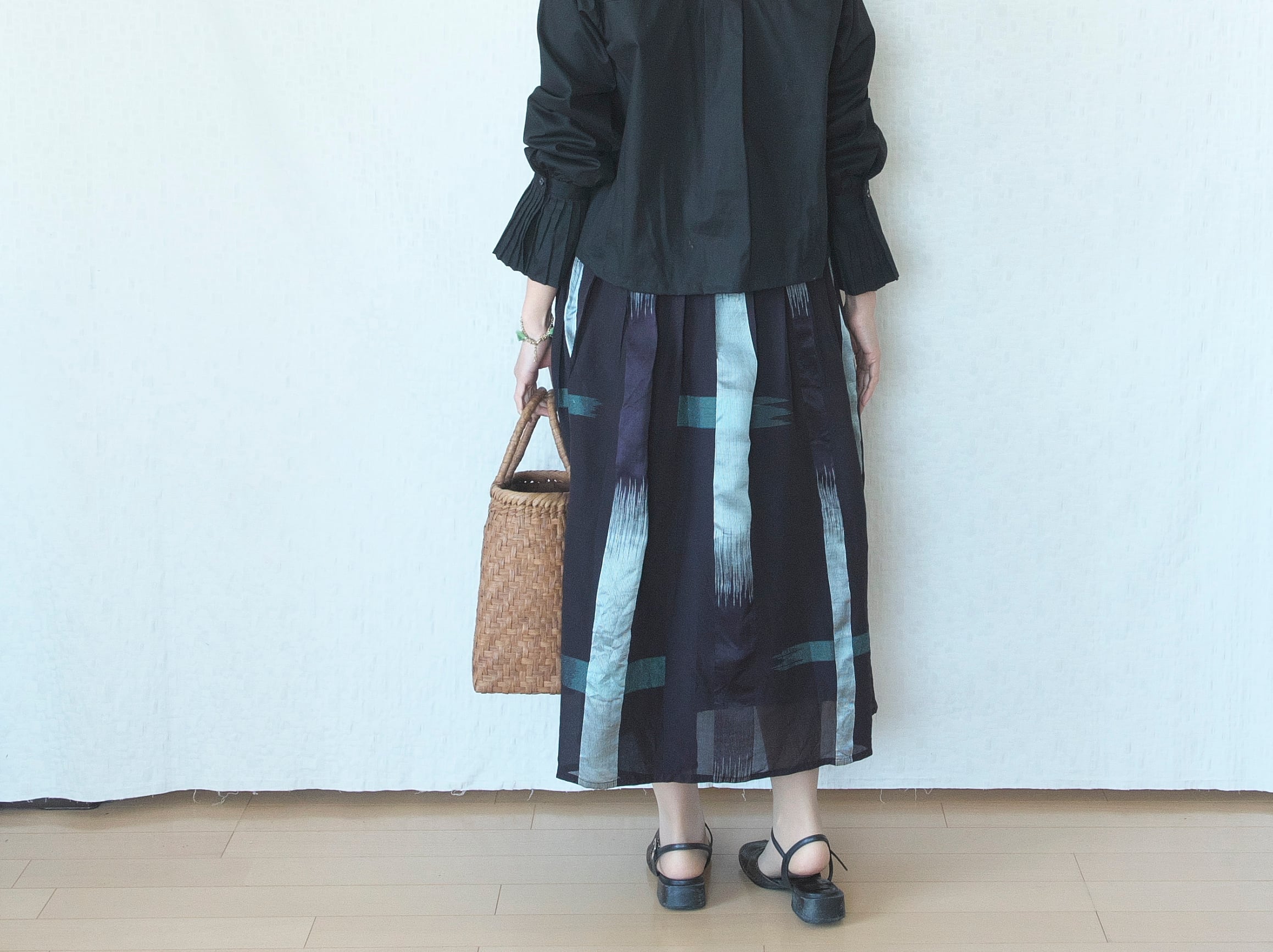 軽やかな夏着物に裏地を付けて、オールシーズン着用可能なスカートに仕立てました。