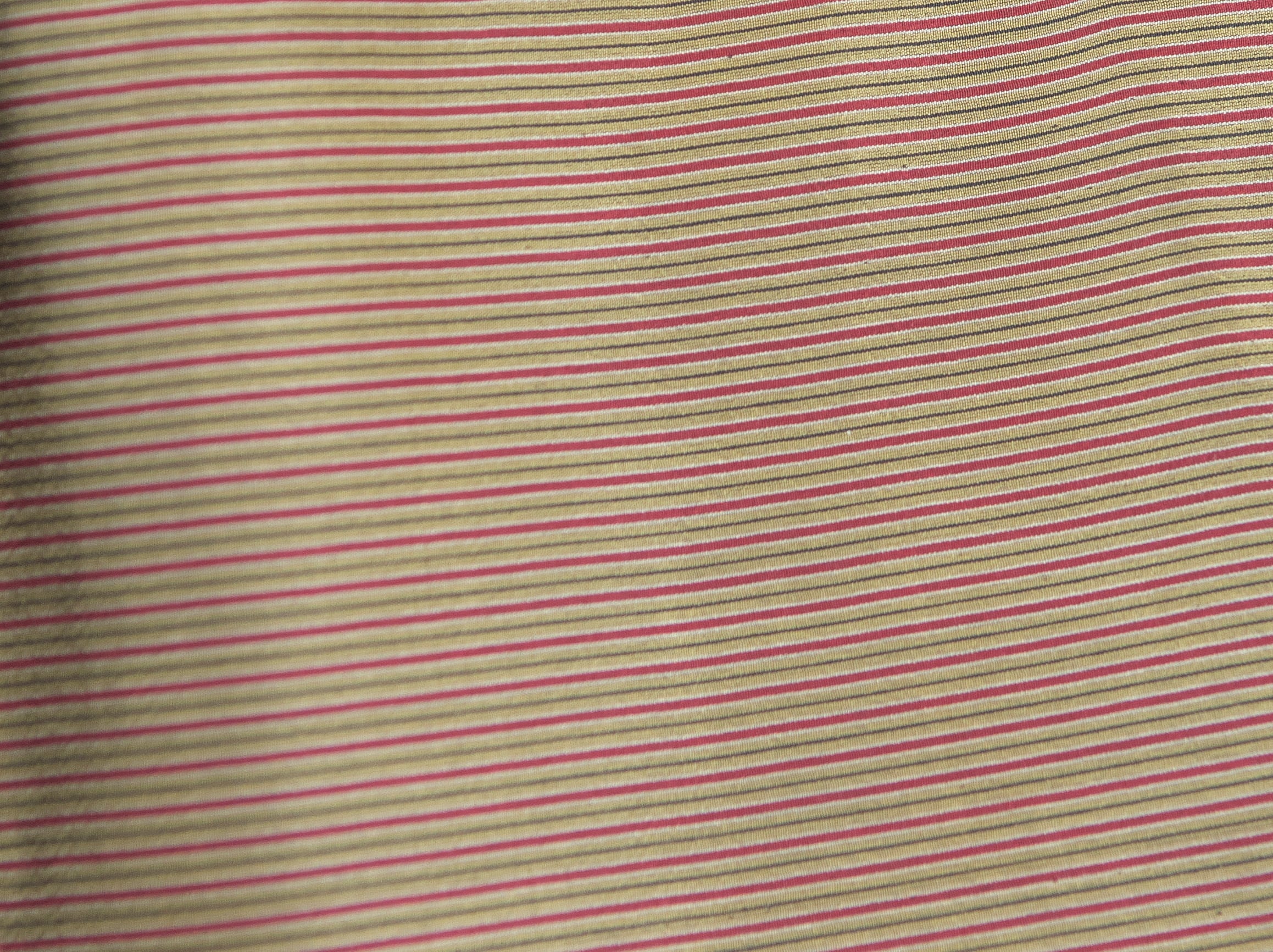 明るい黄土色に赤いピンストライプ。