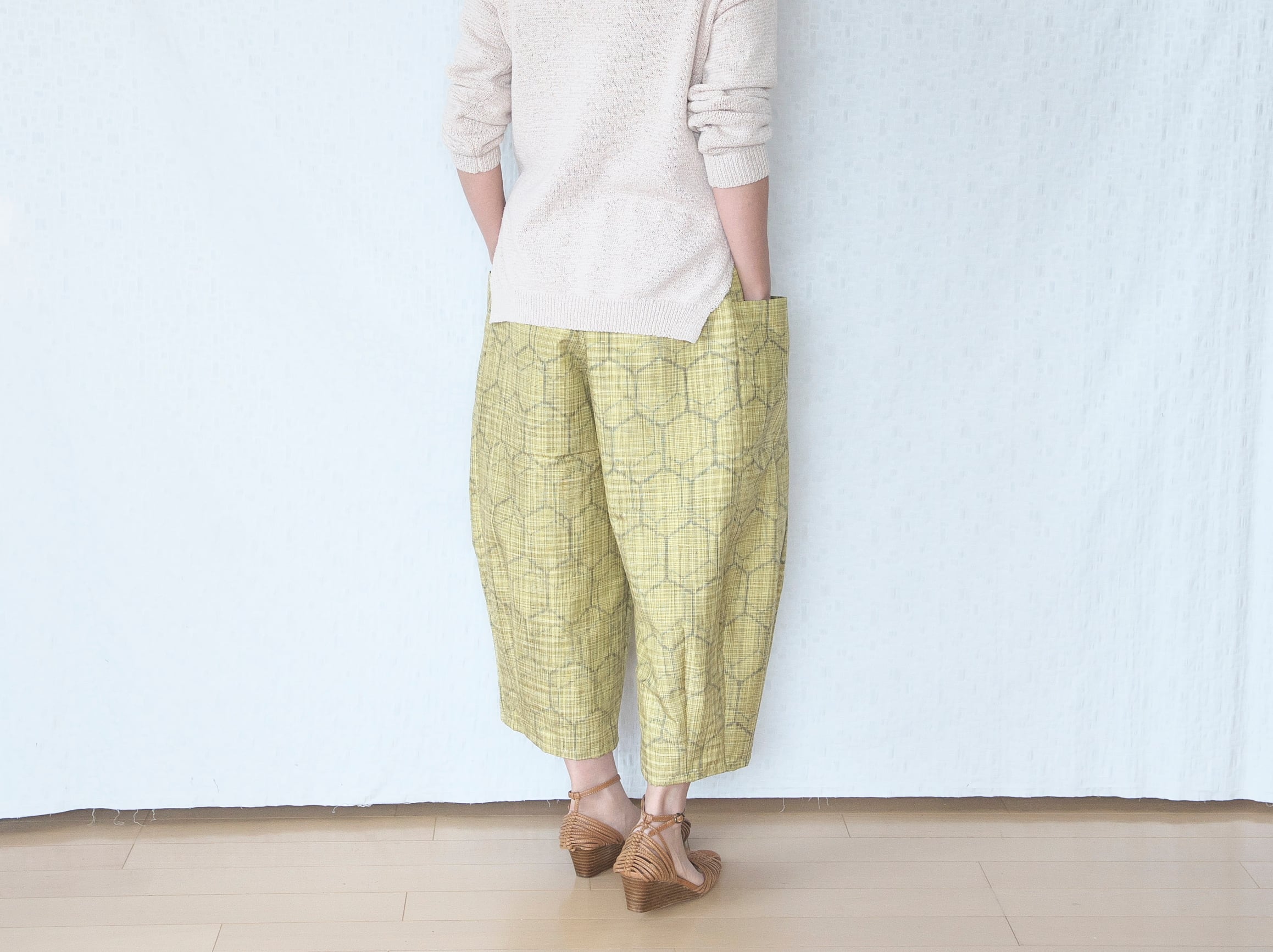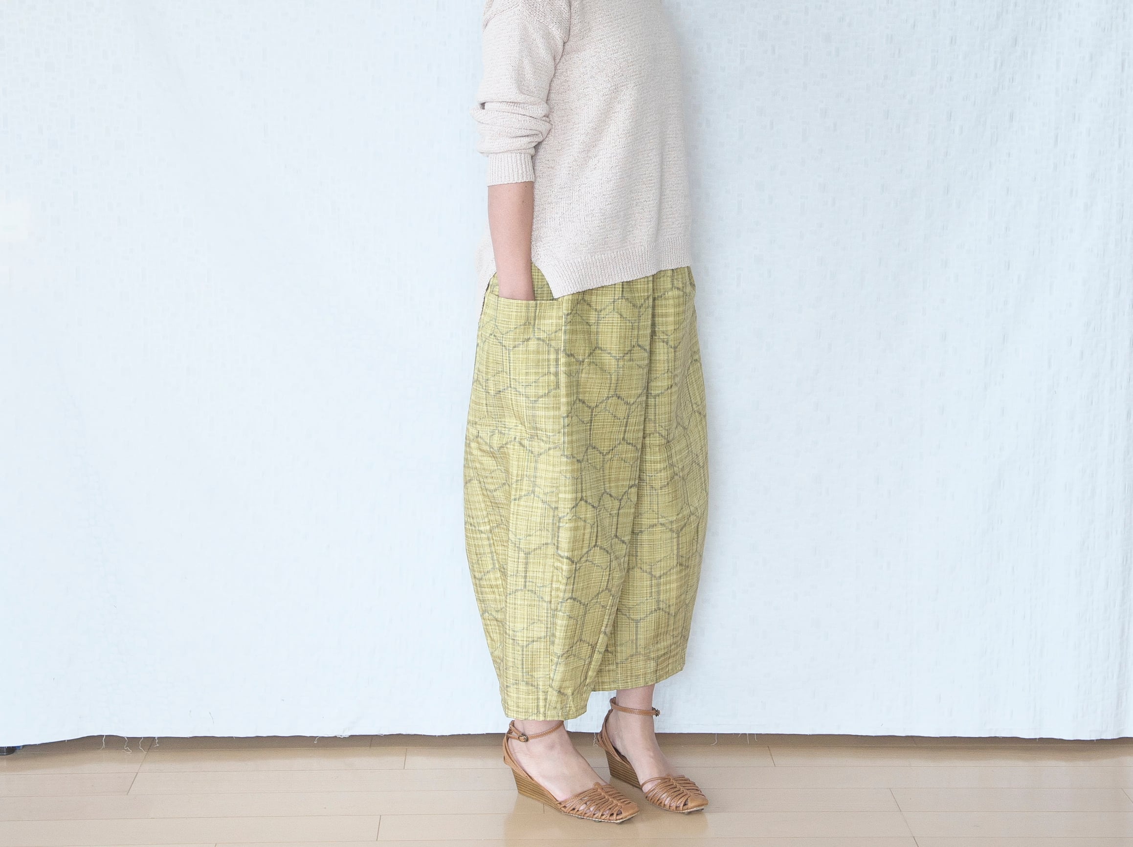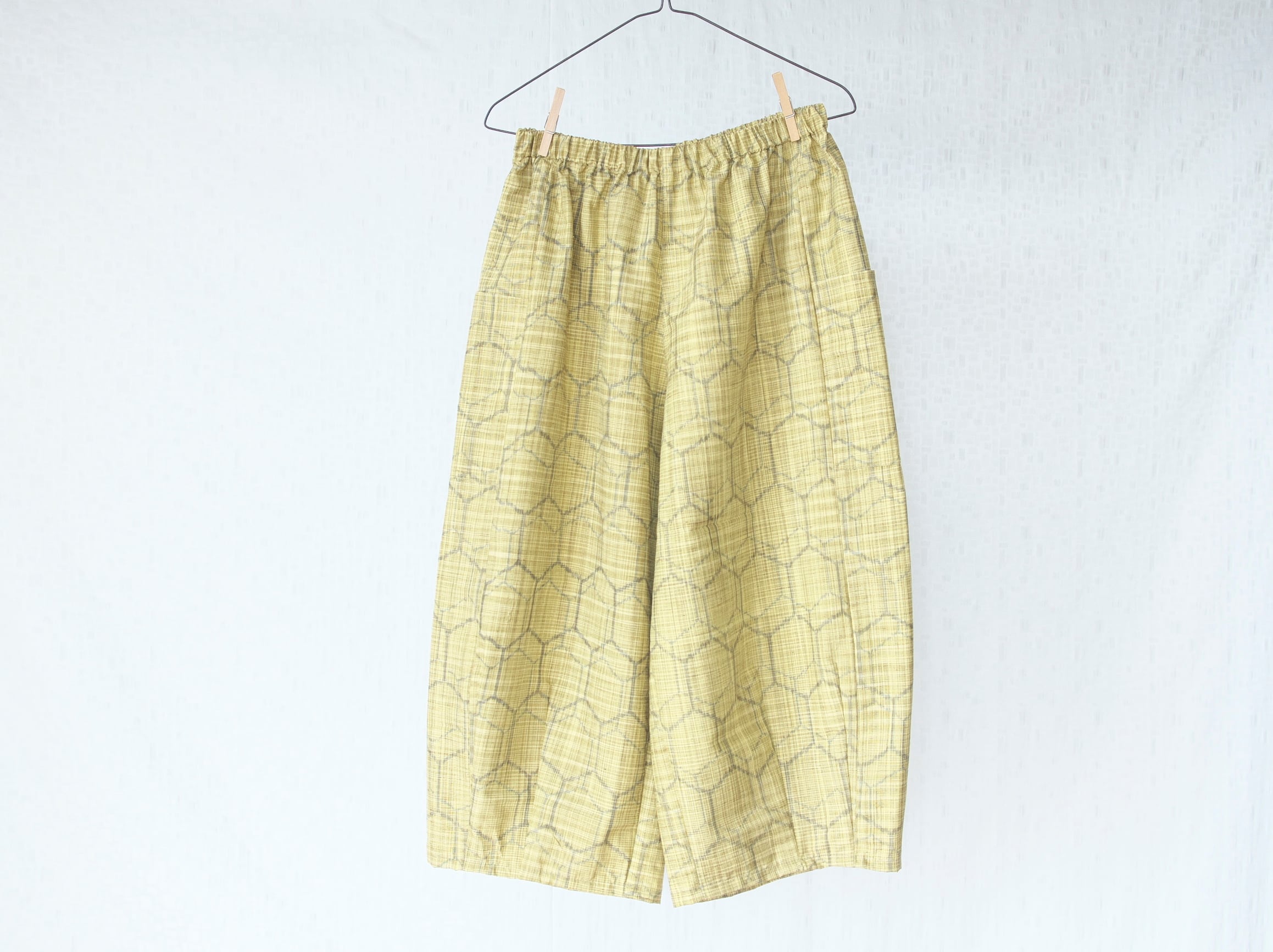ざっくり素朴な紬の温もり、明るく爽やかな黄色の春らしいパンツができました。