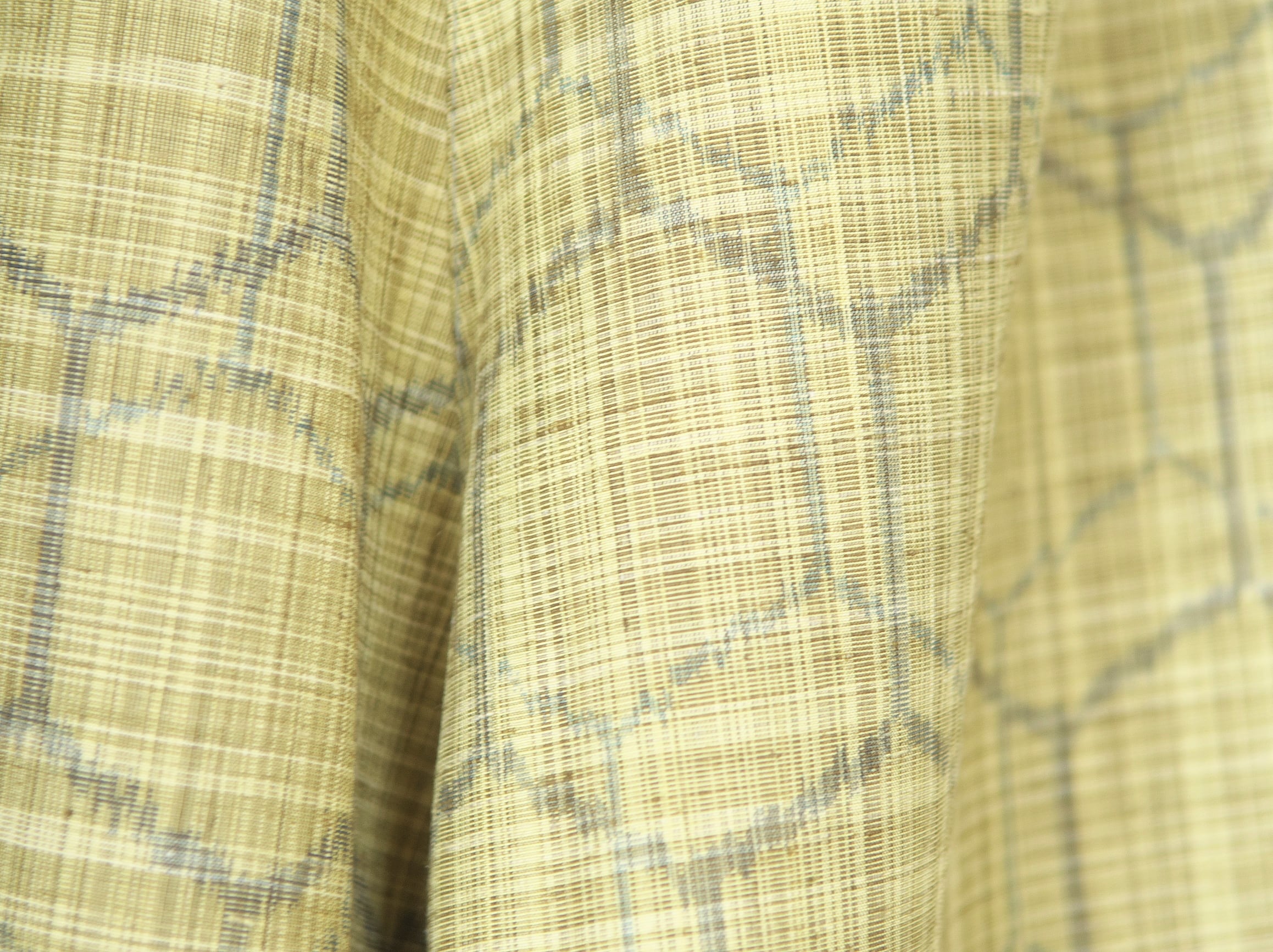 レモンイエローにグレーの亀甲柄の紬のお着物地。