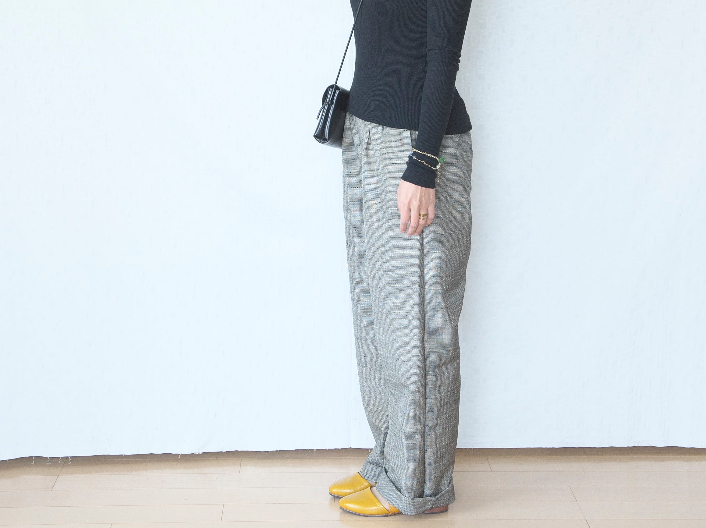 身長157cmのモデルが太めの2ロールでフルレングス。