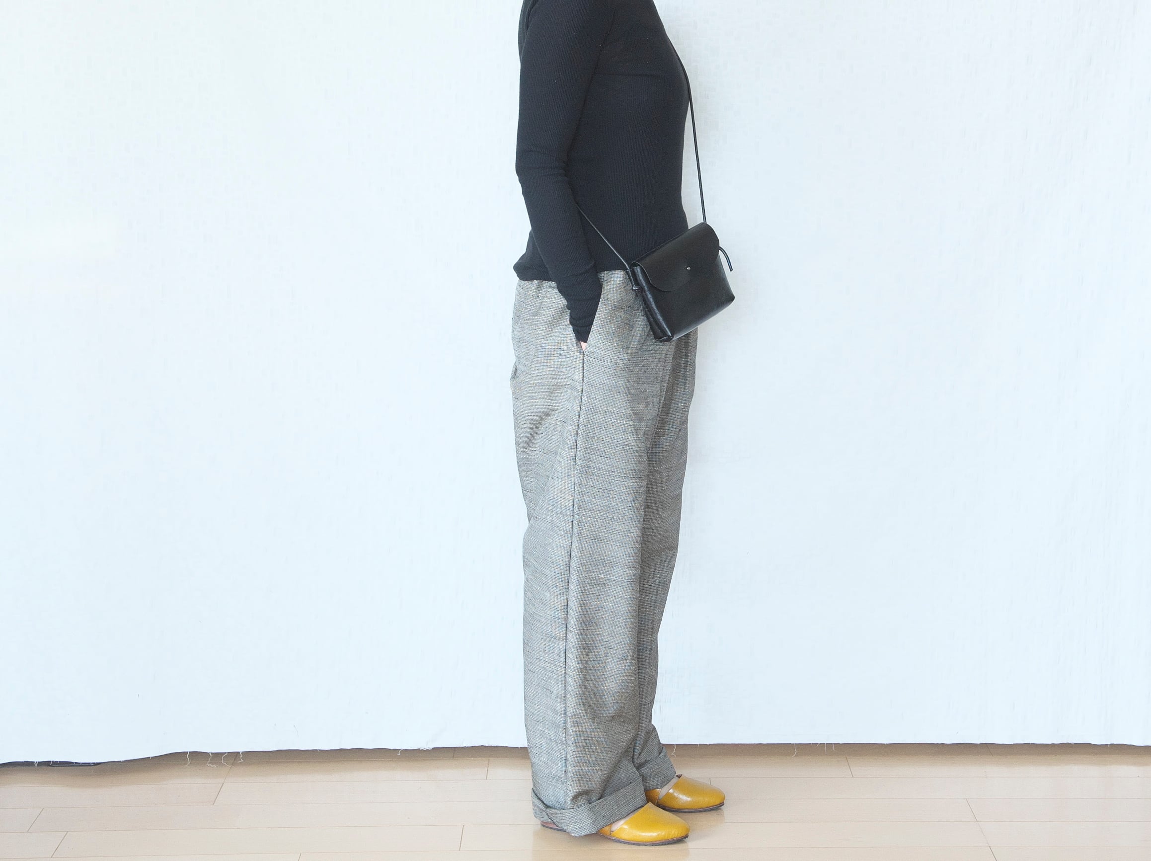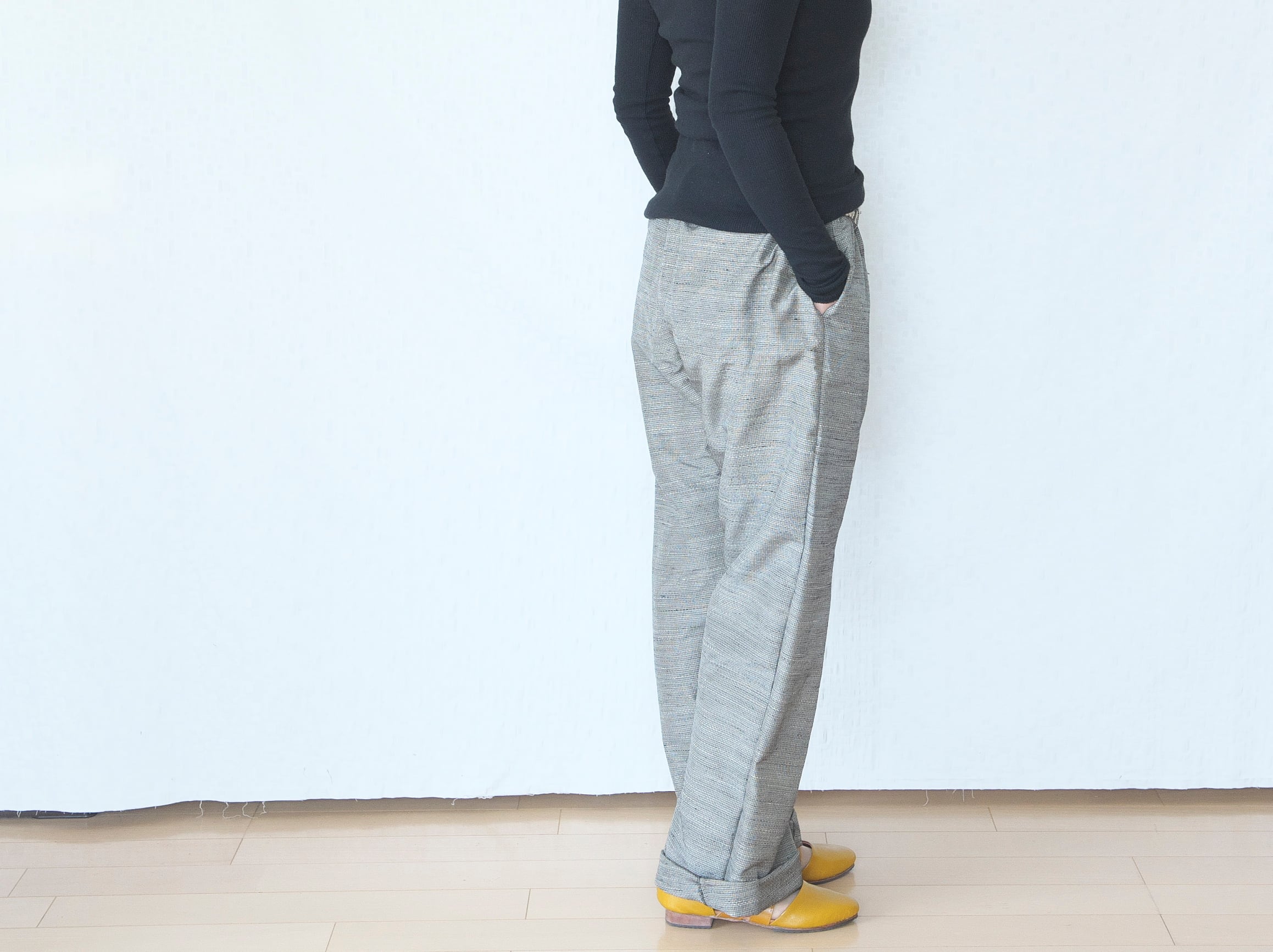 股上深く、お腹お尻まわりから裾に至るまで、全体的にゆったりとしていますのでとても動きやすいです。