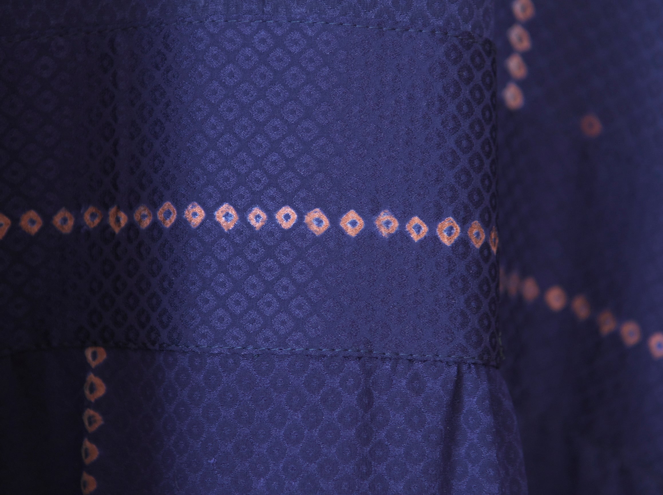 よく見ると綸子の地模様も鹿の子絞りの模様になっていて「うわっ!おちゃめ!」って思いました。(お着物って一つとして同じものがなくて、携わった職人たちも「ウェーイいいこと思いついちゃったぁ」って楽しみながら一反一反生み出していたんだろうなぁって思いませんか ^_^)