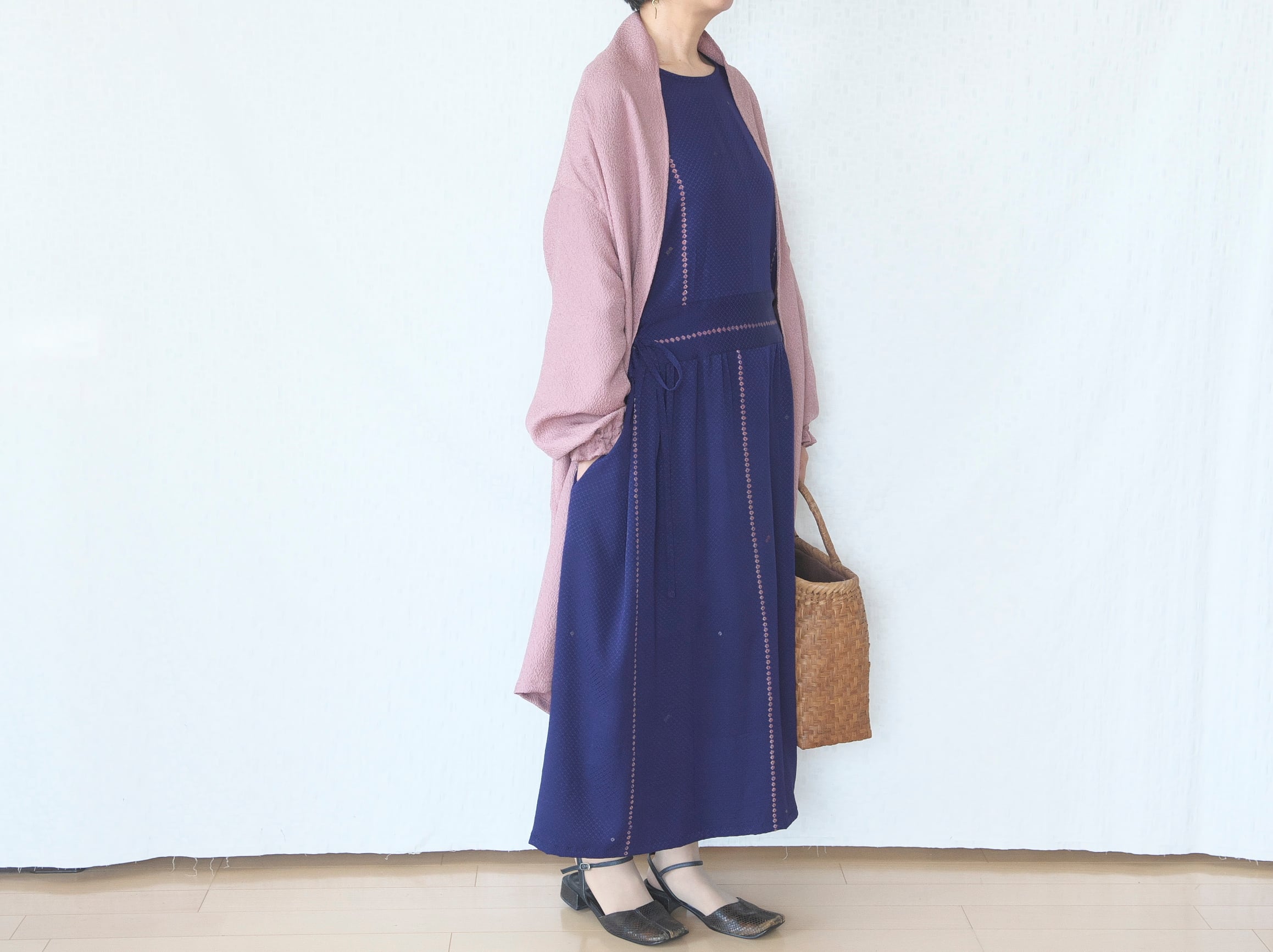 お着物をリメイクしたワンピースです。