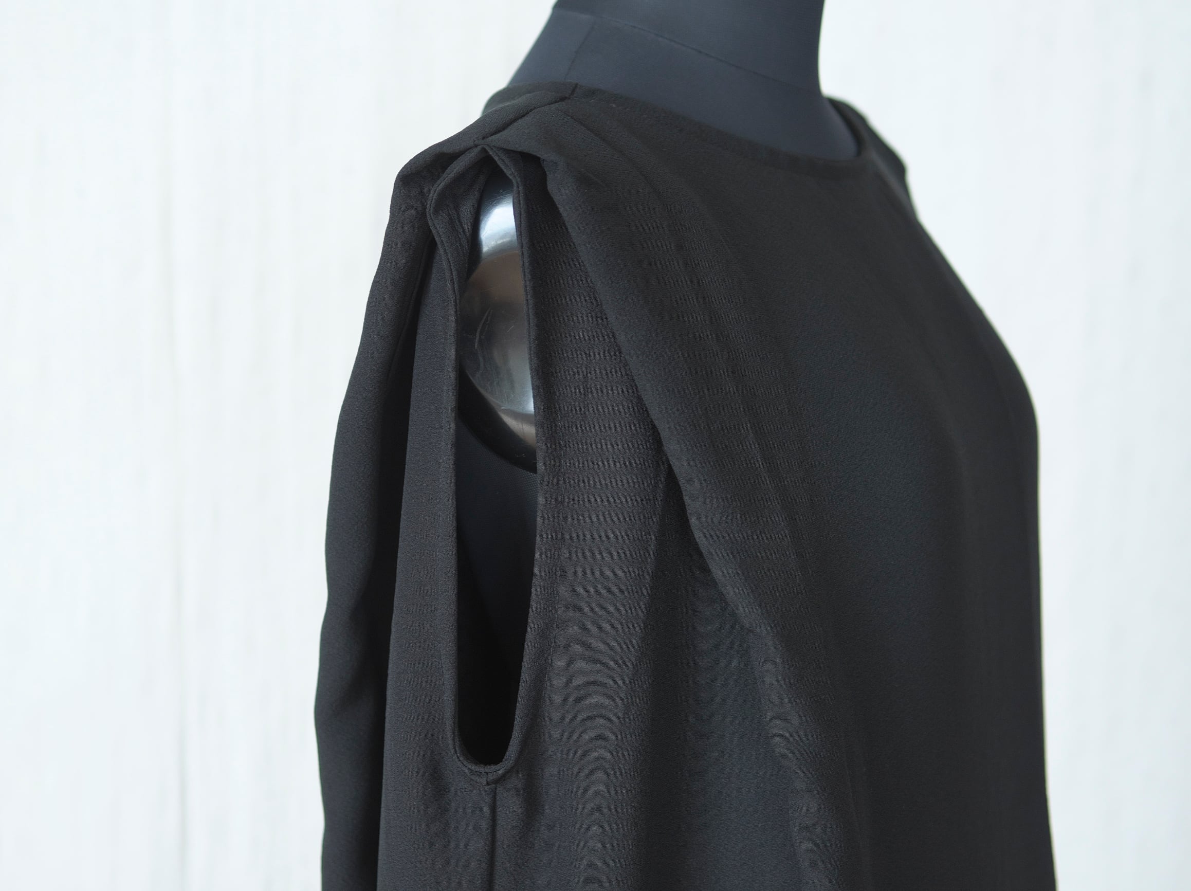 正面から見るとシンプルなAラインに見えますが、肩にタックをたっぷり取っているため、横から見た時のふわっと膨らむシルエットがとても可愛いです。