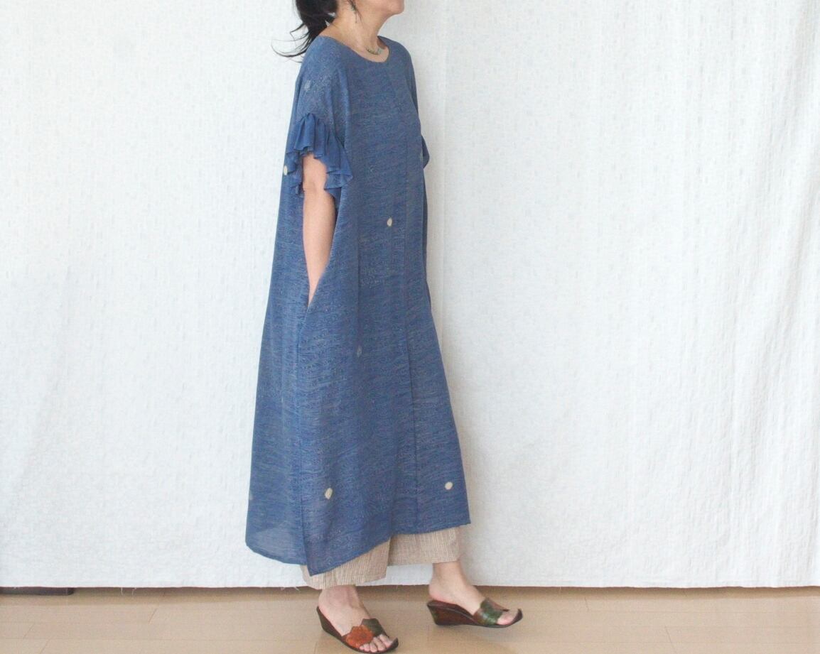 ゆったりめのストンとシンプルなラインに、フリルのお袖を付けてフェミニンに。