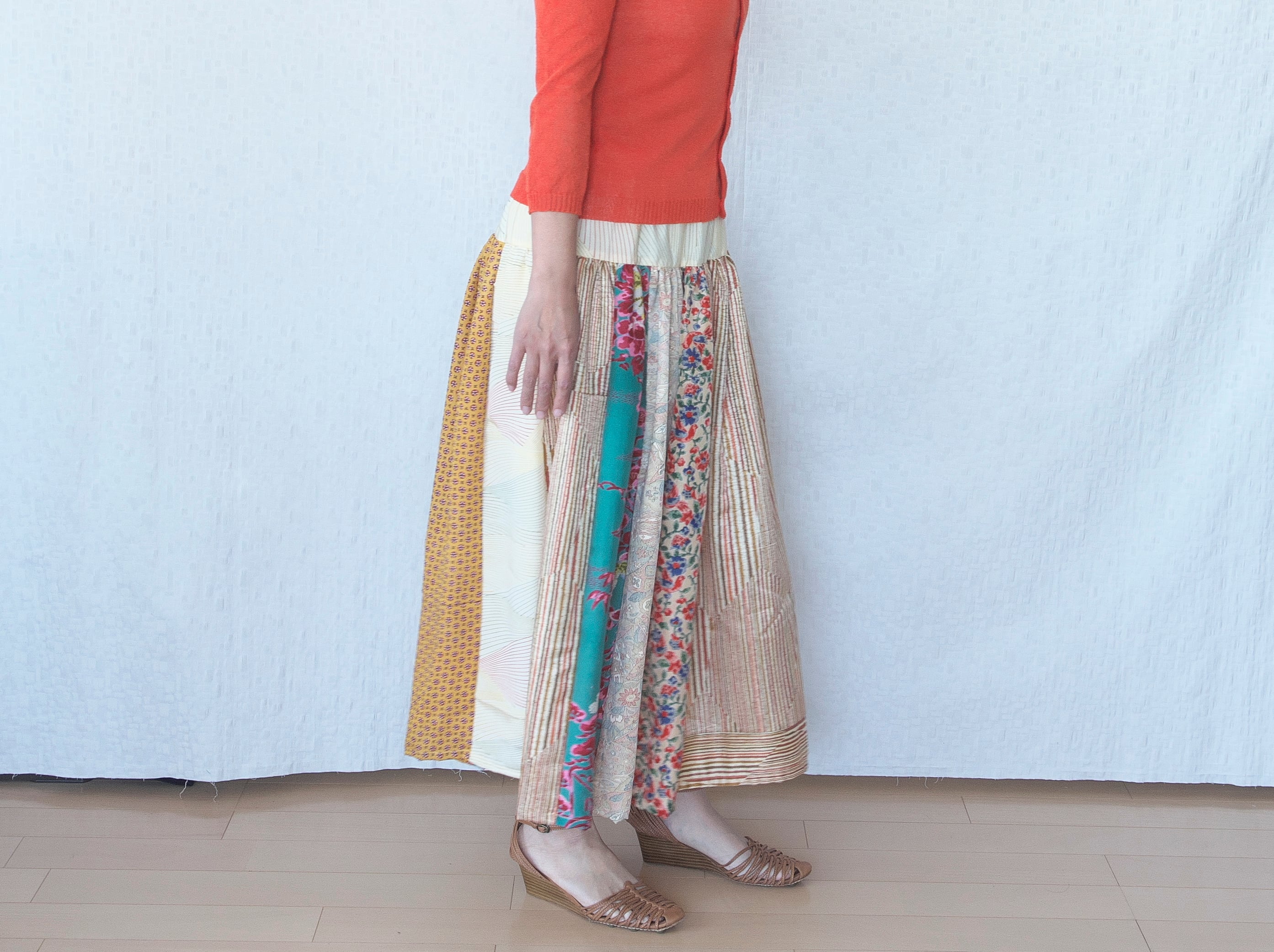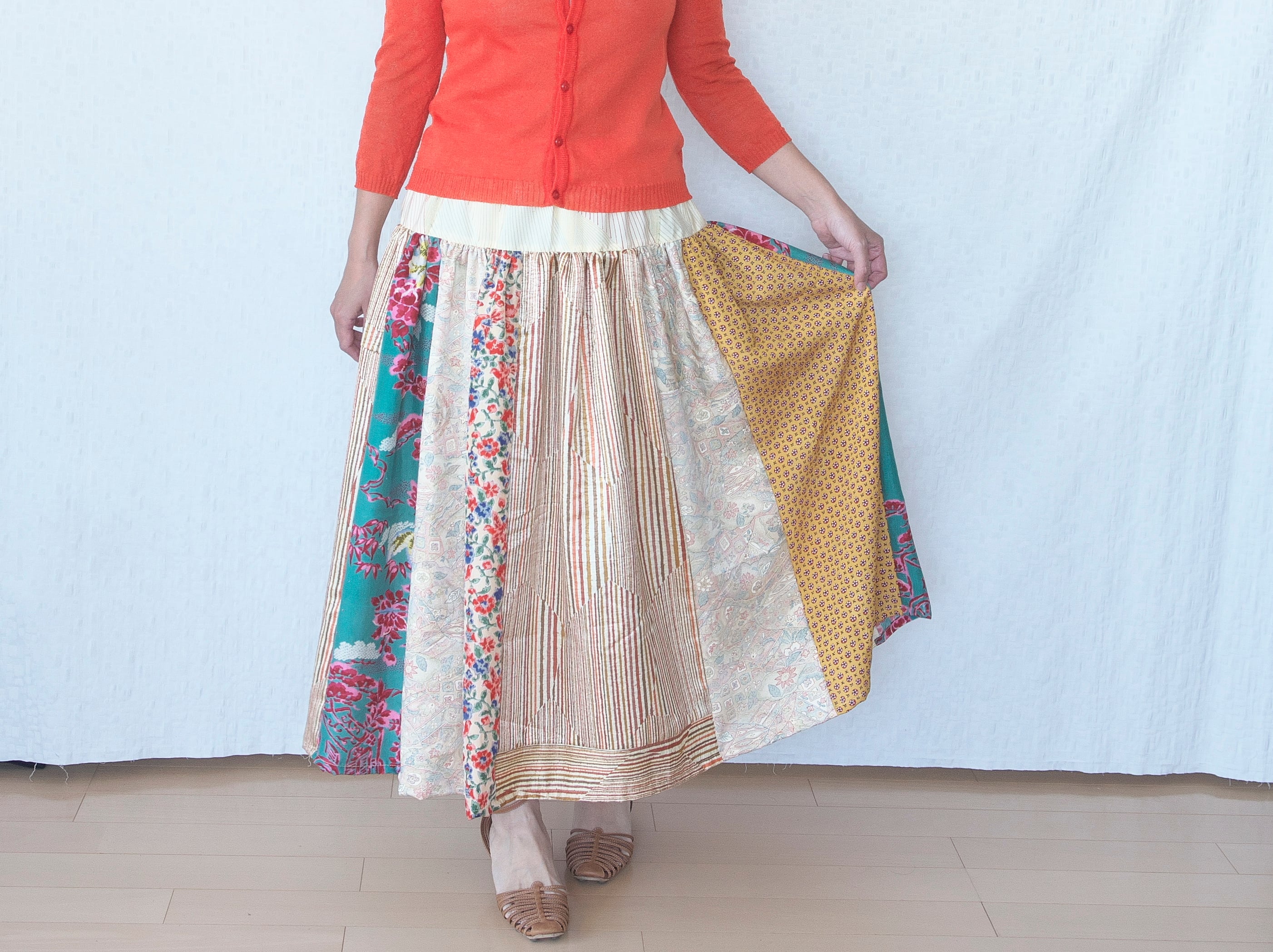 色んなお着物地をパッチワークしたスカートです。