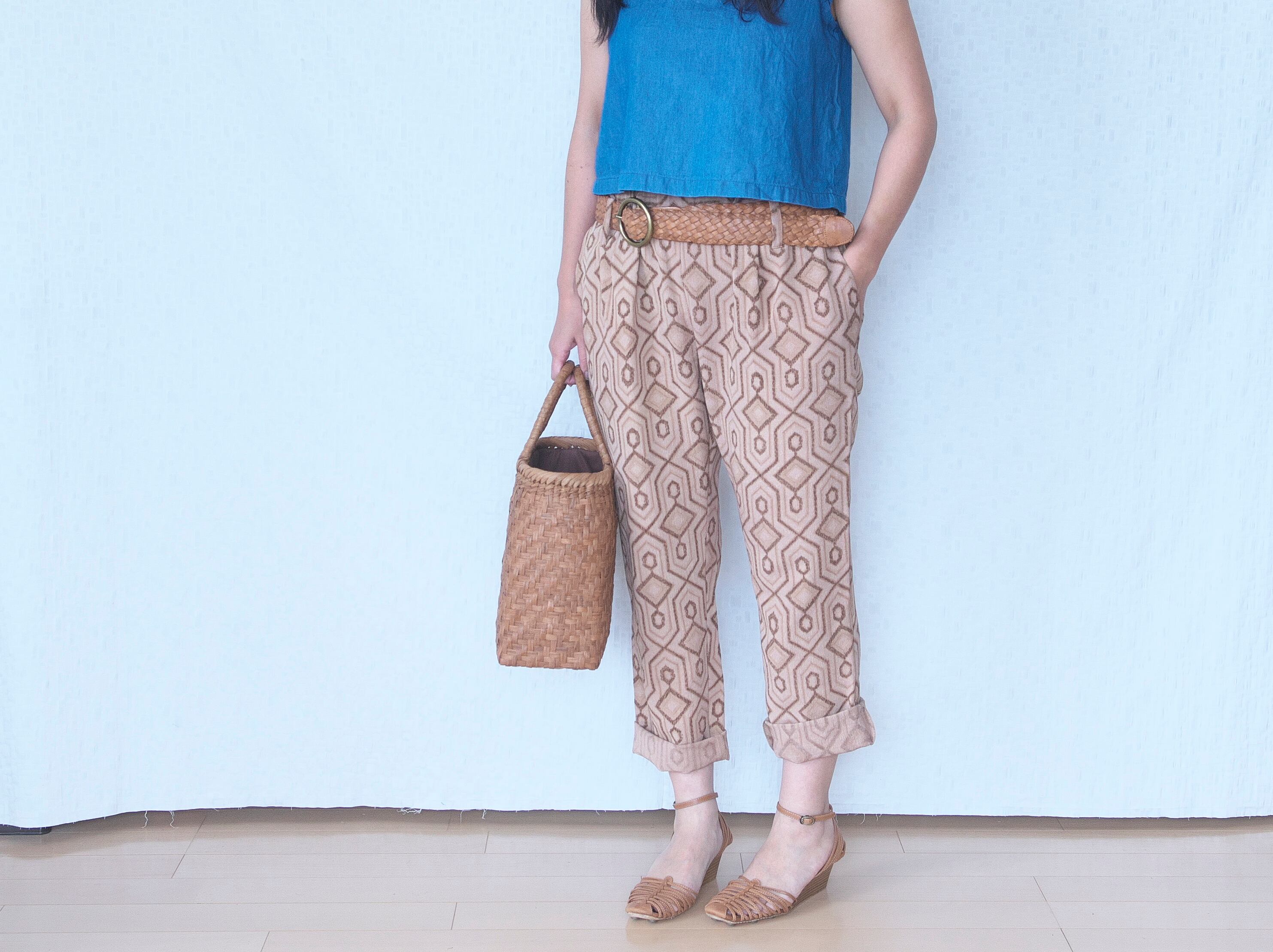 お召着物をリメイクしたパンツです。
