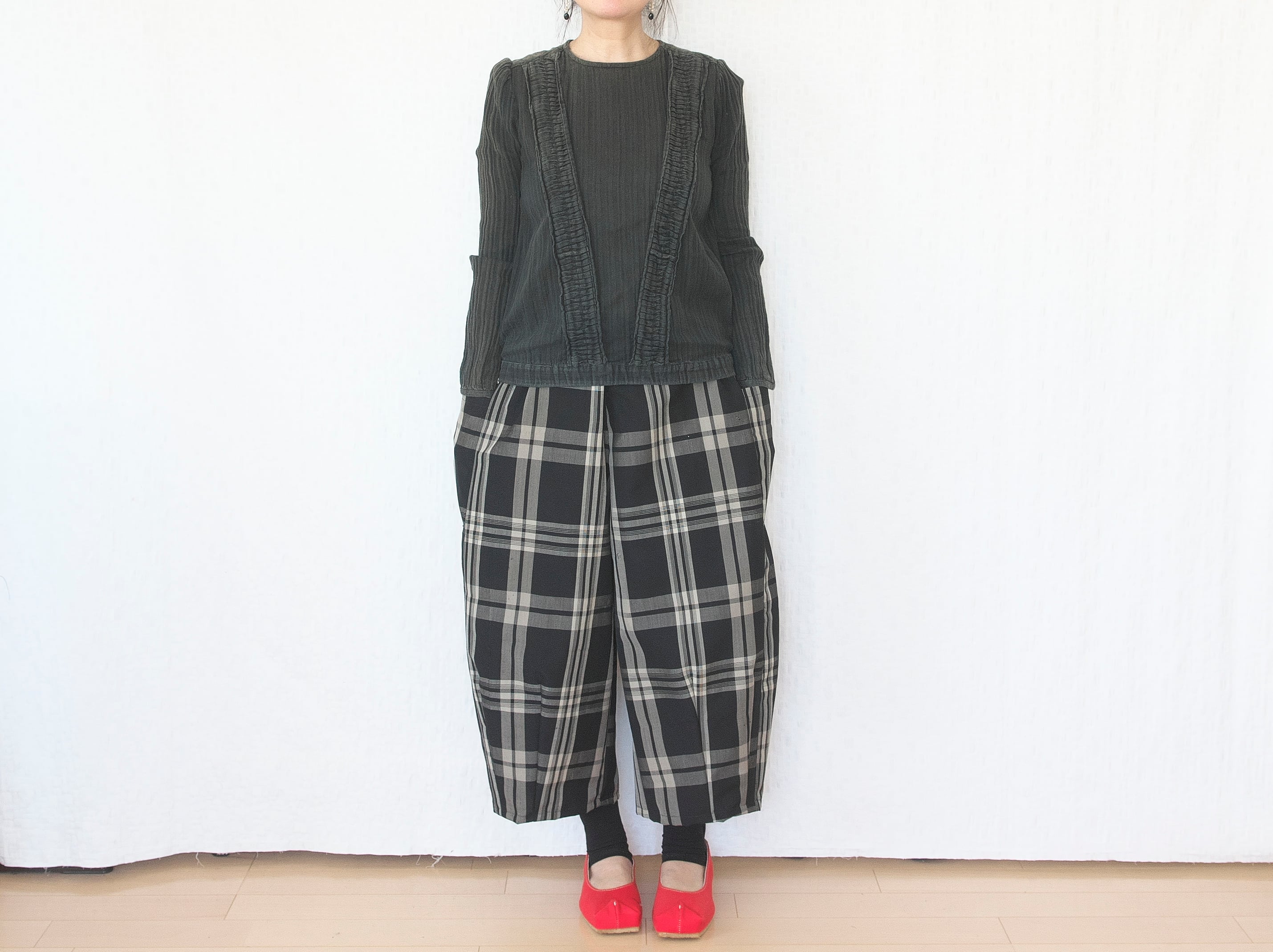 ウール一枚仕立てですので、冬場はレギンスやタイツなどと合わせてご着用ください。